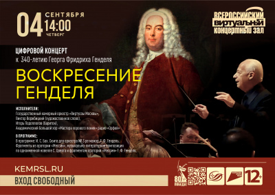4 сентября в 14:00 в Виртуальном концертном зале Государственной научной библиотеки Кузбасса им. В.Д. Федорова состоится показ цифрового концерта «Воскресение Генделя», посвященный 340-летию композитора Георга Генделя.