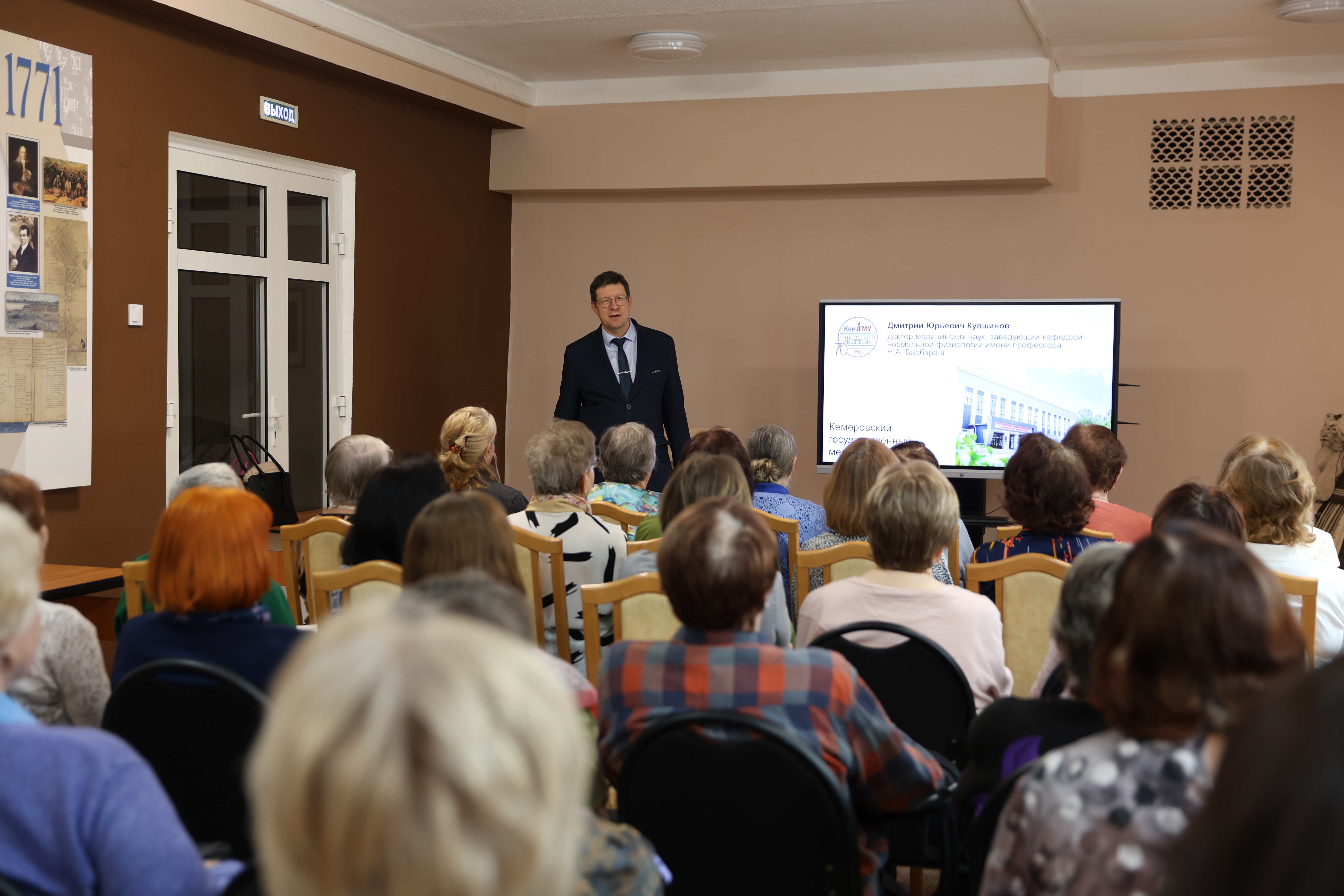 Здоровье – главная ценность любого человека. Близким нам людям мы всегда желаем доброго и крепкого здоровья. Дмитрий Юрьевич Кувшинов, доцент, доктор медицинских наук, заведующий кафедрой нормальной физиологии имени профессора Н.А.Барбараш Кемеровского государственного медицинского университета Минздрава России, накануне Всемирного дня здоровья провел в главной библиотеке Кузбасса лекцию «Как сохранить здоровье на долгие годы?». На встречу с доктором пришли сотрудники и участники разных клубов библиотеки, а также члены семей участников специальной военной операции.