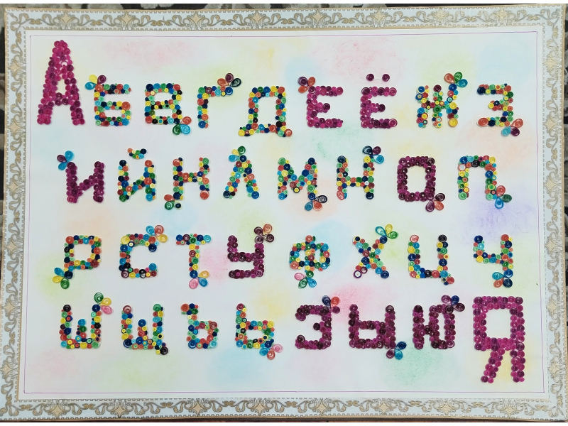Описание работы: С недавних пор квиллинг стал одним из самых популярных творческих направлений при работе с бумагой. Квиллинг (бумагокручение) — этоискусство изготовления плоских или объёмных композиций из скрученных в спиральки длинных и узких полосок бумаги. Готовым спиралькам придаются различные формы, получая элементы — модули. Они используются для сбора даже самых сложных работ — фигурок, картин, открыток, альбомов и т. д.. Поэтому для создания красочного алфавита была выбрана именно техника квиллинга.