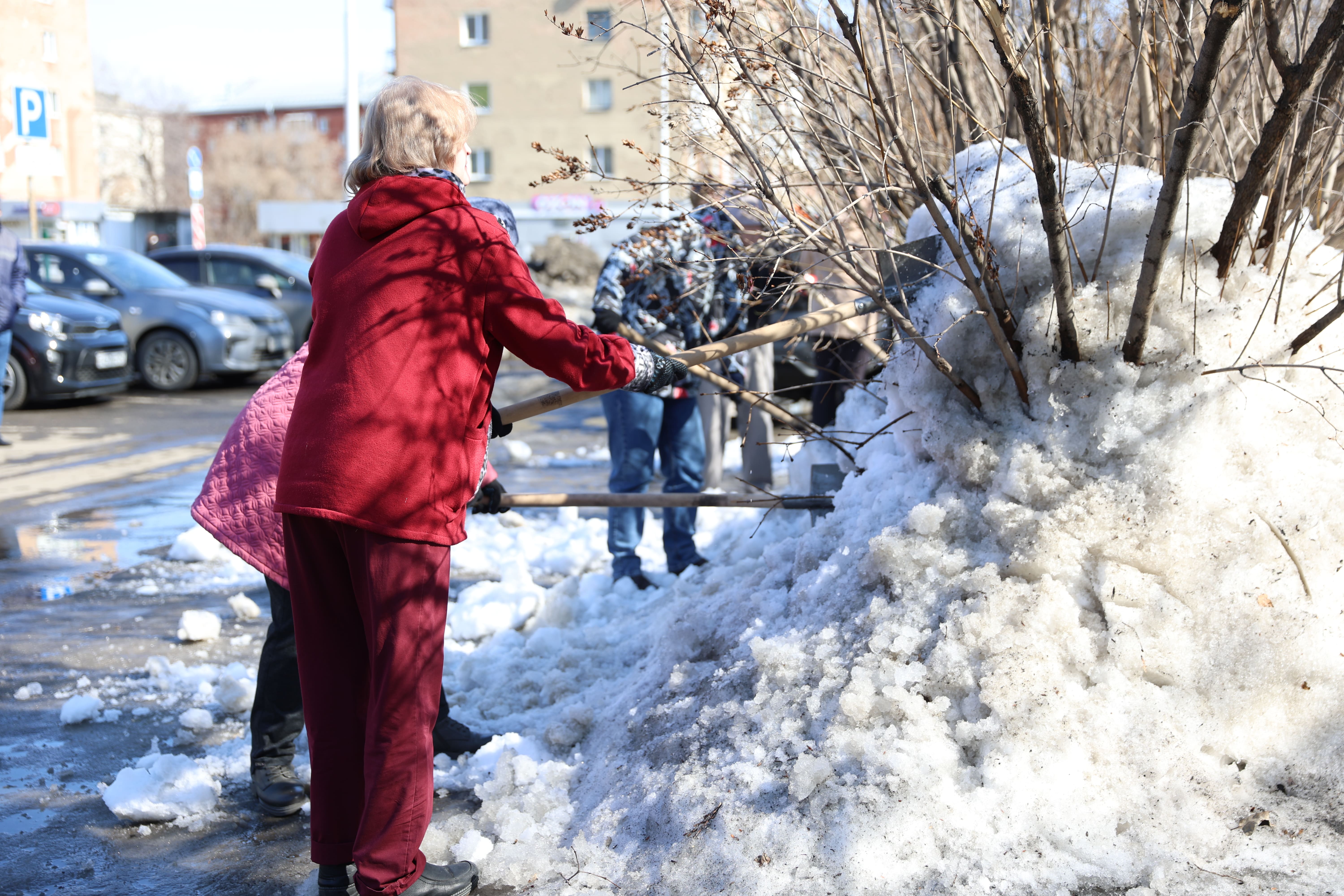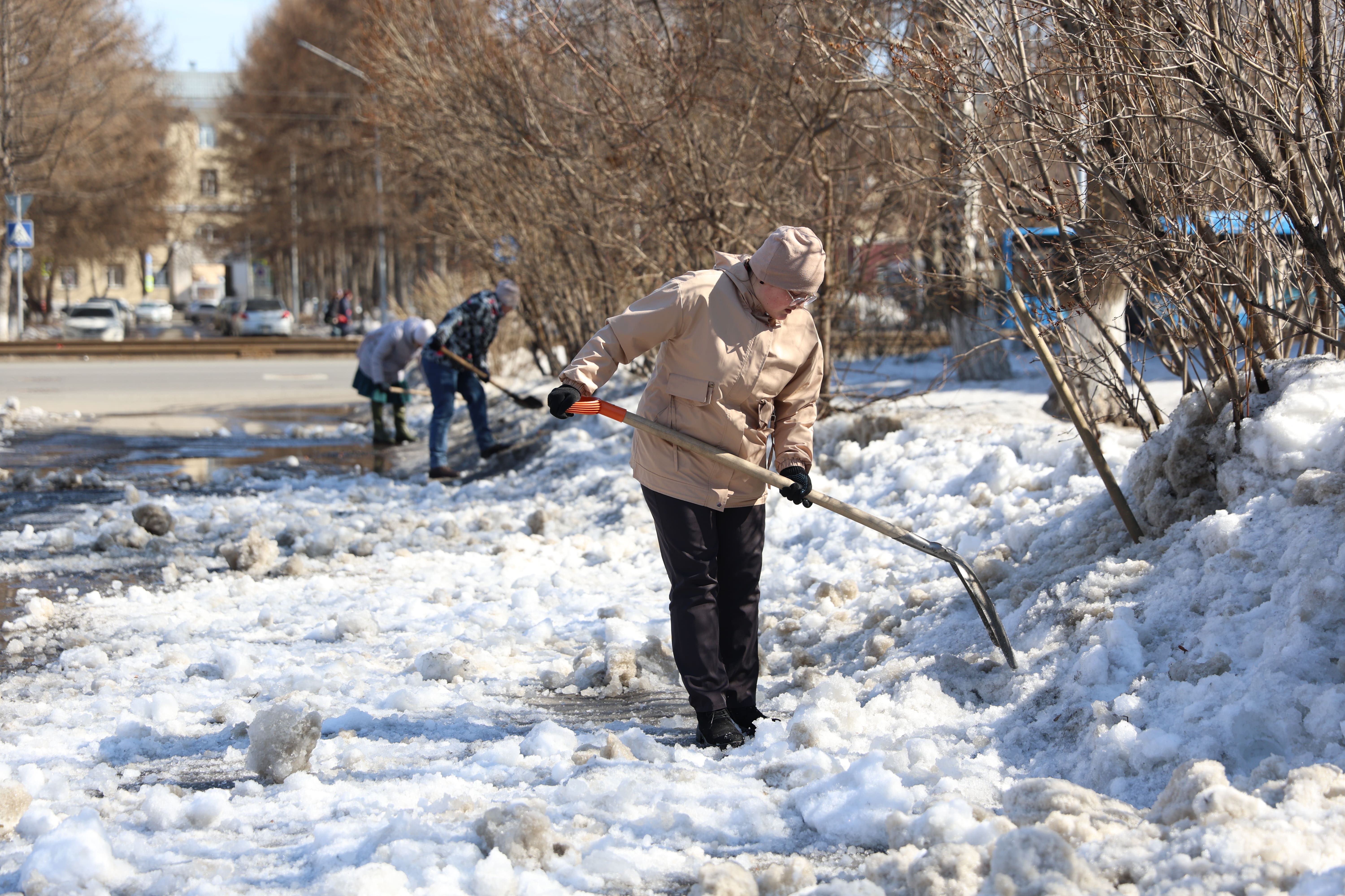 В фокусе внимания был сезонный «сюрприз» — обильные остатки снега, которые традиционно требуют ручной очистки в начале апреля.