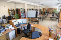 Краткая информация: Читальный зал как для индивидуальных занятий, так и для групповых. Возможно проведение on-line лекций, организация видео-конференций.