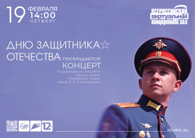 19 февраля в 14:00 в Виртуальном концертном зале Государственной научной библиотеки Кузбасса им. В.Д. Федорова состоится цифровой концерт Академического ансамбля песни и пляски Российской Армии имени А.В. Александрова, посвященный Дню защитника Отечества.