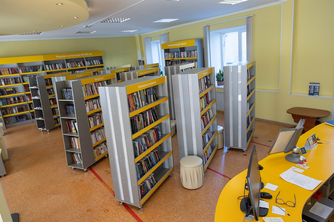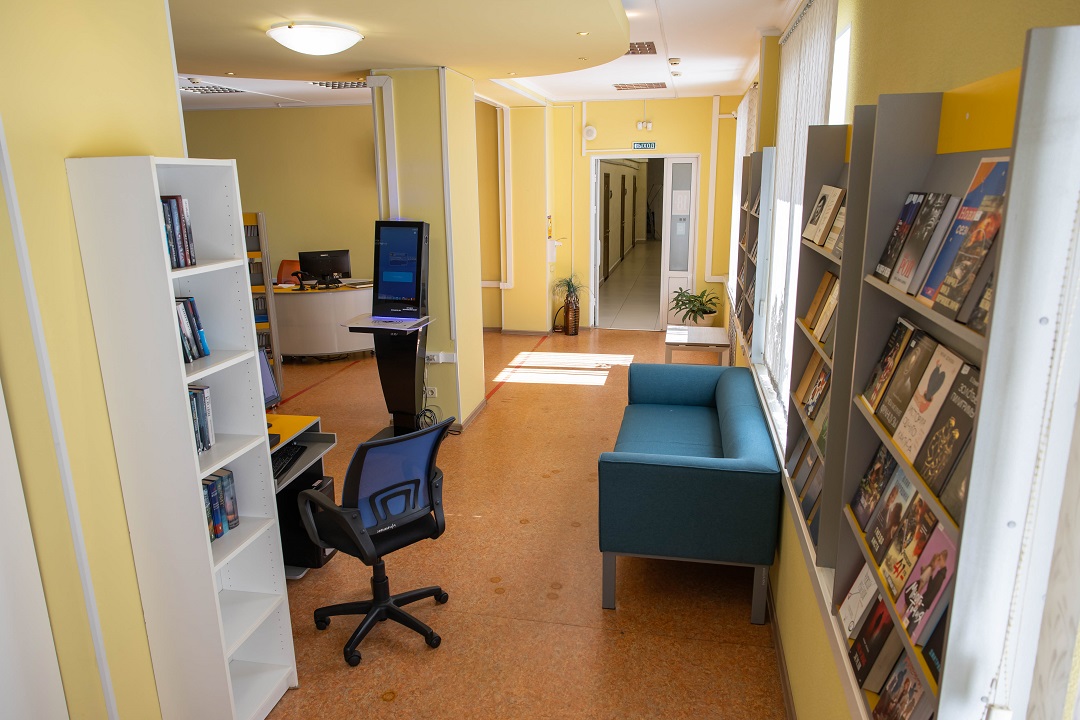 Краткая информация: Зал с открытым доступом к стеллажам с книгами. Зал предназначен для самостоятельного выбора книг на дом.