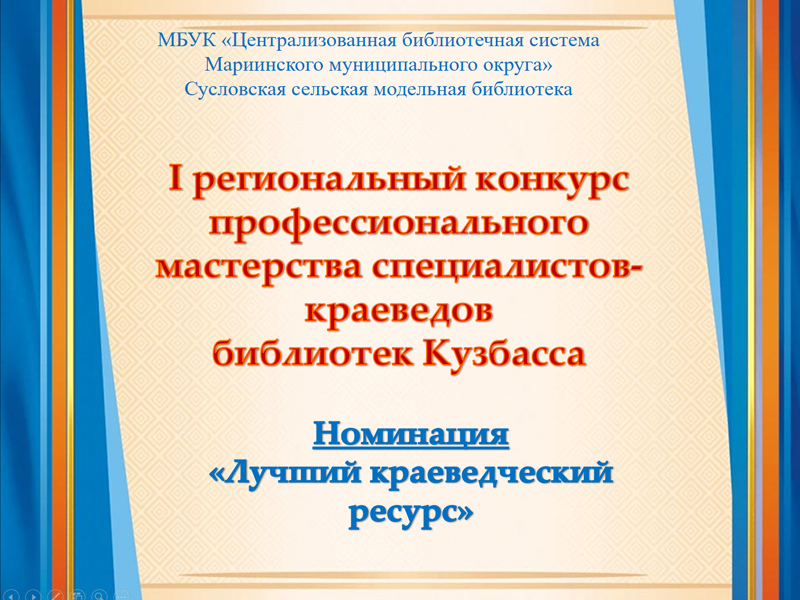 Место работы: МБУК «ЦБС Мариинского муниципального округа» Сусловская сельская модельная библиотека