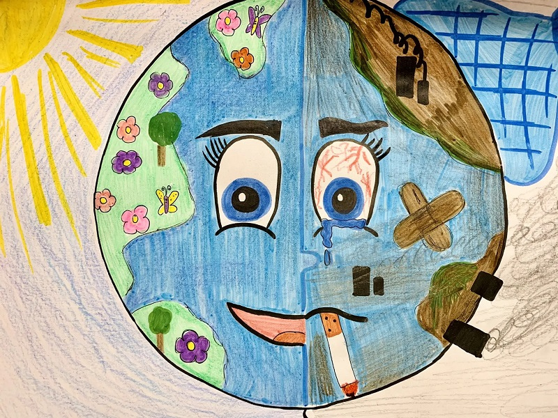 Мой рисунок показывает, как зависимость от курения разрушает жизнь – как индивидуально, так и общественную. Это призыв задуматься о последствиях и беречь себя и планету от вредных привычек.