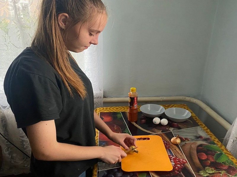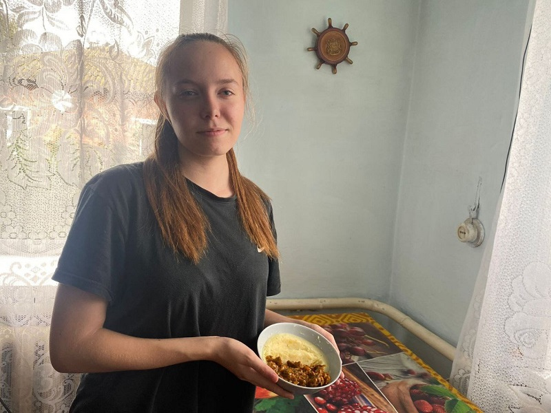 4.3 Затем добавить 2 яйца, растолочь до однородной массы.