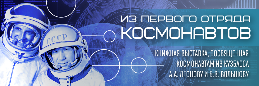 На выставке представлены издания о кузбасских космонавтах А. А. Леонове и Б. В. Волынове.