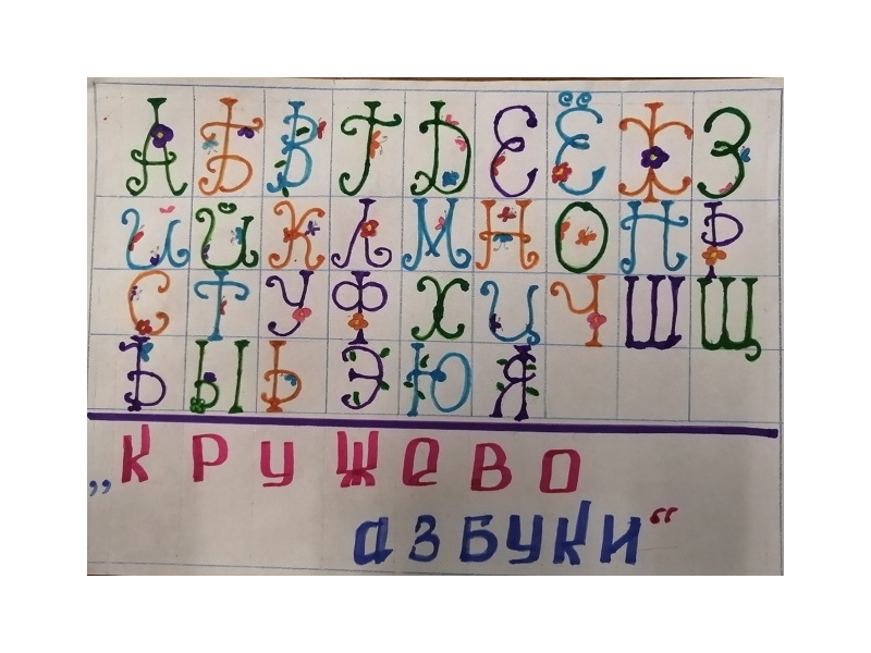 Описание работы: Работа выполнена карандашами и фломастерами. Буквы тонкие и изогнуты в виде кружева. Дополнены буквы цветочками, бабочками и листочками. Олицетворяет работа, по мнению автора, прошедшее лето, такое же красивое и изящное, жаркое и цветочное.