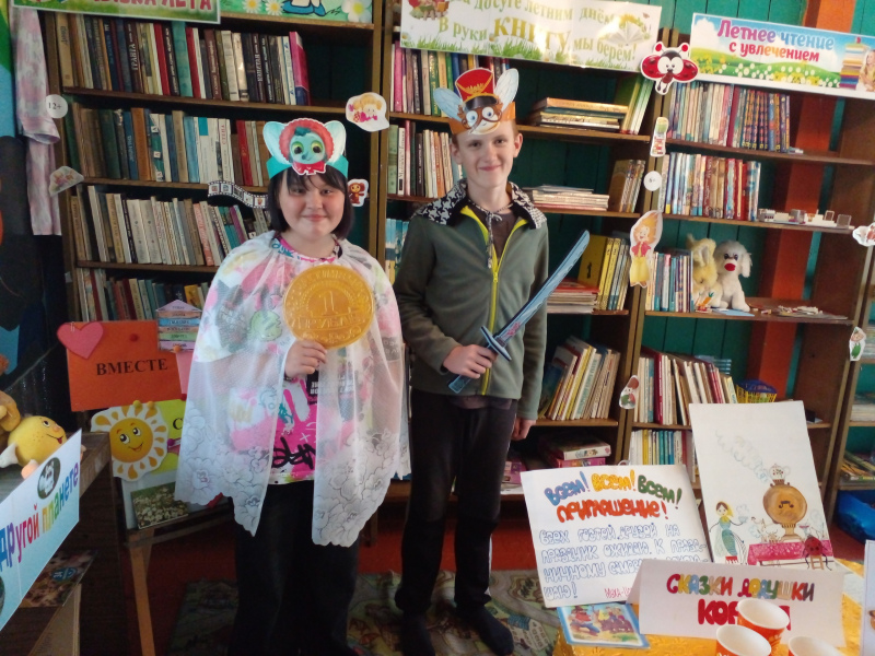 Образ: Муха-Цокотуха, Молодой Комар;Участник: Виктория Герус, Тимофей Попов;Фото предоставлено: МБУК "Централизованная библиотечная система" г. Прокопьевска. Детская библиотека 16 "Планета книг"
