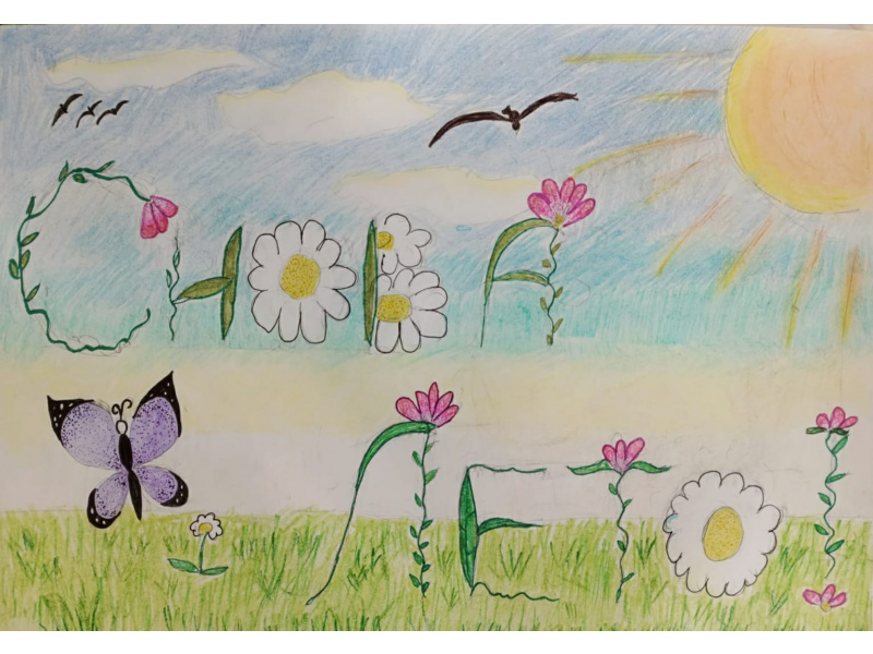 Описание работы: Буквы на работе выполнены в виде элементов растительного происхождения, что способствует эмоциональной реакции на буквы алфавита и лучшему их запоминанию.
