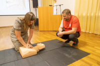Участники мероприятия познакомились с международным алгоритмом оказания первой помощи, узнали как проводить осмотр места происшествия, научились на бок переворачивать пострадавшего, находящегося в бессознательном состоянии, и на практике овладели приемами сердечно-легочной реанимации, искусственной вентиляции легких и методом Геймлиха. Обучение прошли 40 сотрудников библиотеки.
