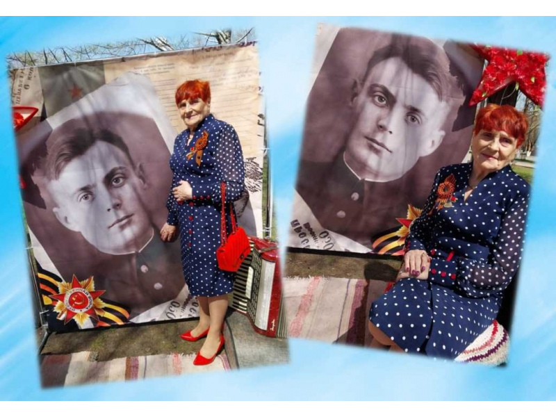 На фотографии Андрус Нелля Васильевна - бывшая малолетняя узница фашизма. Прогуливаясь в День Победы, она неожиданно увидела портрет своего отца - Мункянова Василия Севастьяновича, который погиб на фронте смертью храбрых.