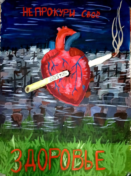 Описание работы: Работа в мрачной палитре показывает, всю пагубность привычки которая разрушает организм.