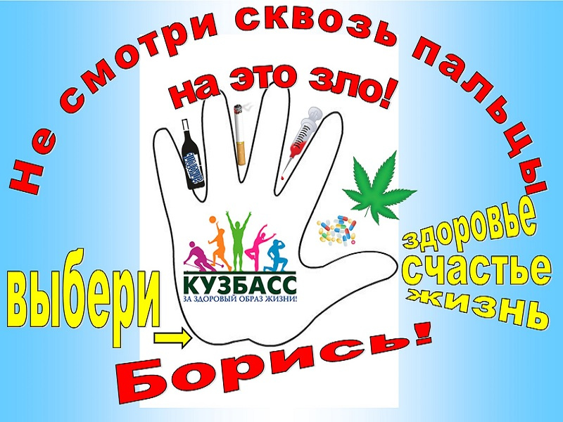 Описание работы: На плакате изображены пальцы, сквозь которые некоторые смотрят на злоупотребление наркотиками, курением, алкоголем. Плакат призывает бороться с этим злом и выбрать для себя ЗОЖ.