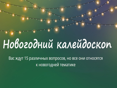 Викторина под названием «Новогодний калейдоскоп» прекрасно помогает создать ожидание и радость перед наступлением Нового года. Этот праздник, полный волшебства и чудес, требует особого настроя, и викторина способствует этому. Это увлекательное сочетание интеллектуальных задач, любознательности и доброго юмора, которое отлично подходит для семейных встреч или дружеских посиделок.