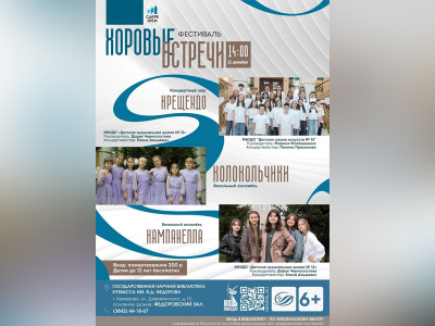 21 декабря в 14:00 Государственная научная библиотека Кузбасса им. В.Д. Федорова приглашает на очередной концерт фестиваля «Хоровые встречи».
