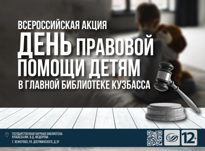 С 19 по 24 ноября 2025 года в рамках Всероссийской акции «День правовой помощи детям»» в главной библиотеке Кузбасса будут организованы мероприятия, направленные на оказание юридической помощи взрослым и детям.
