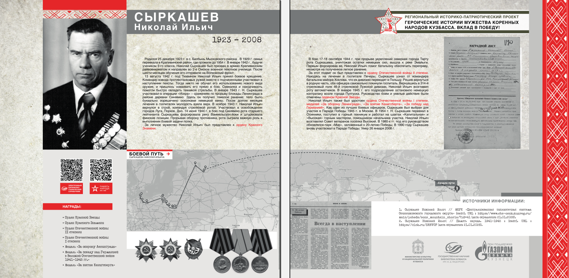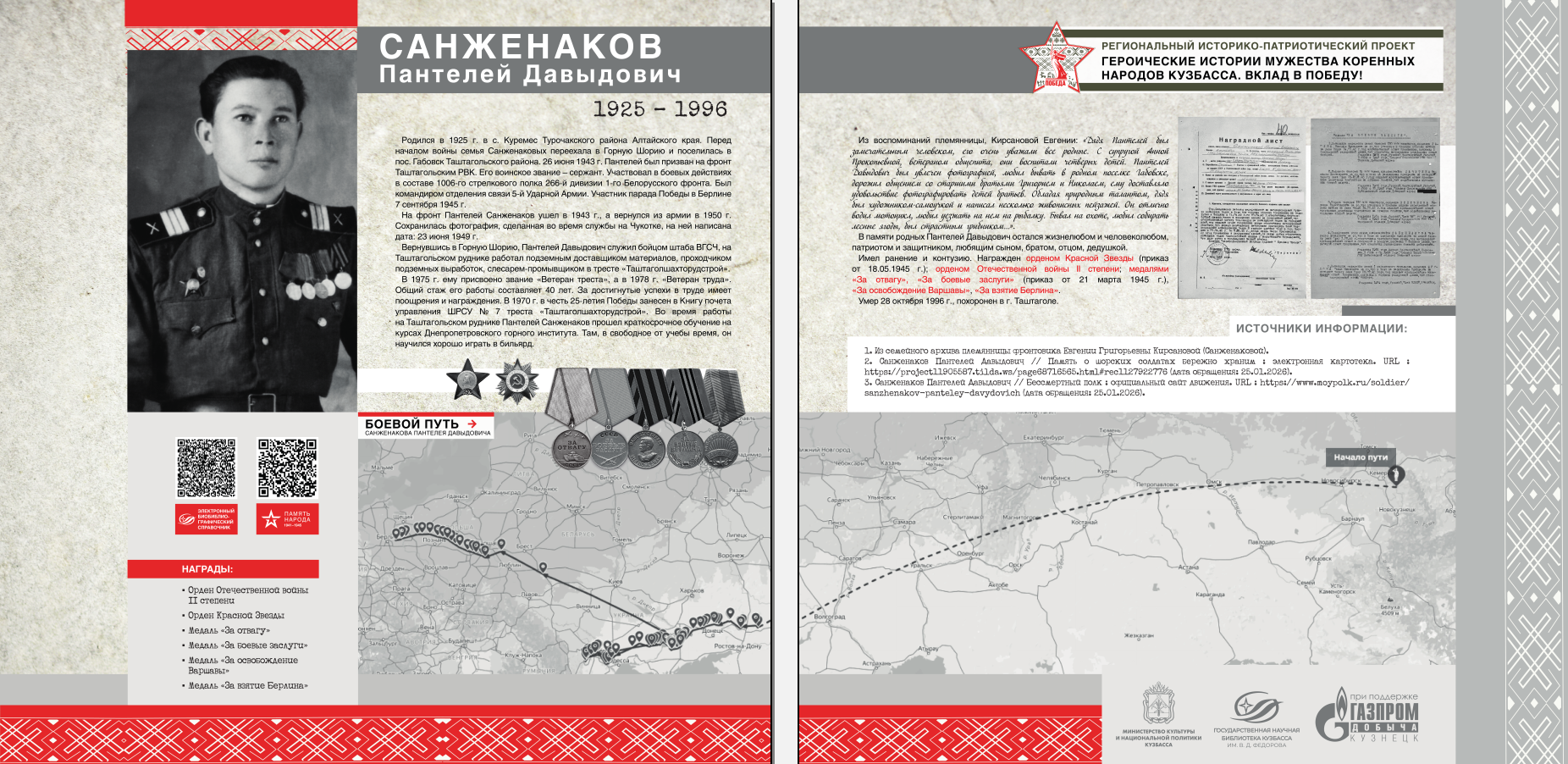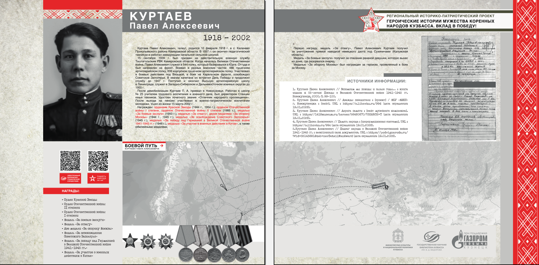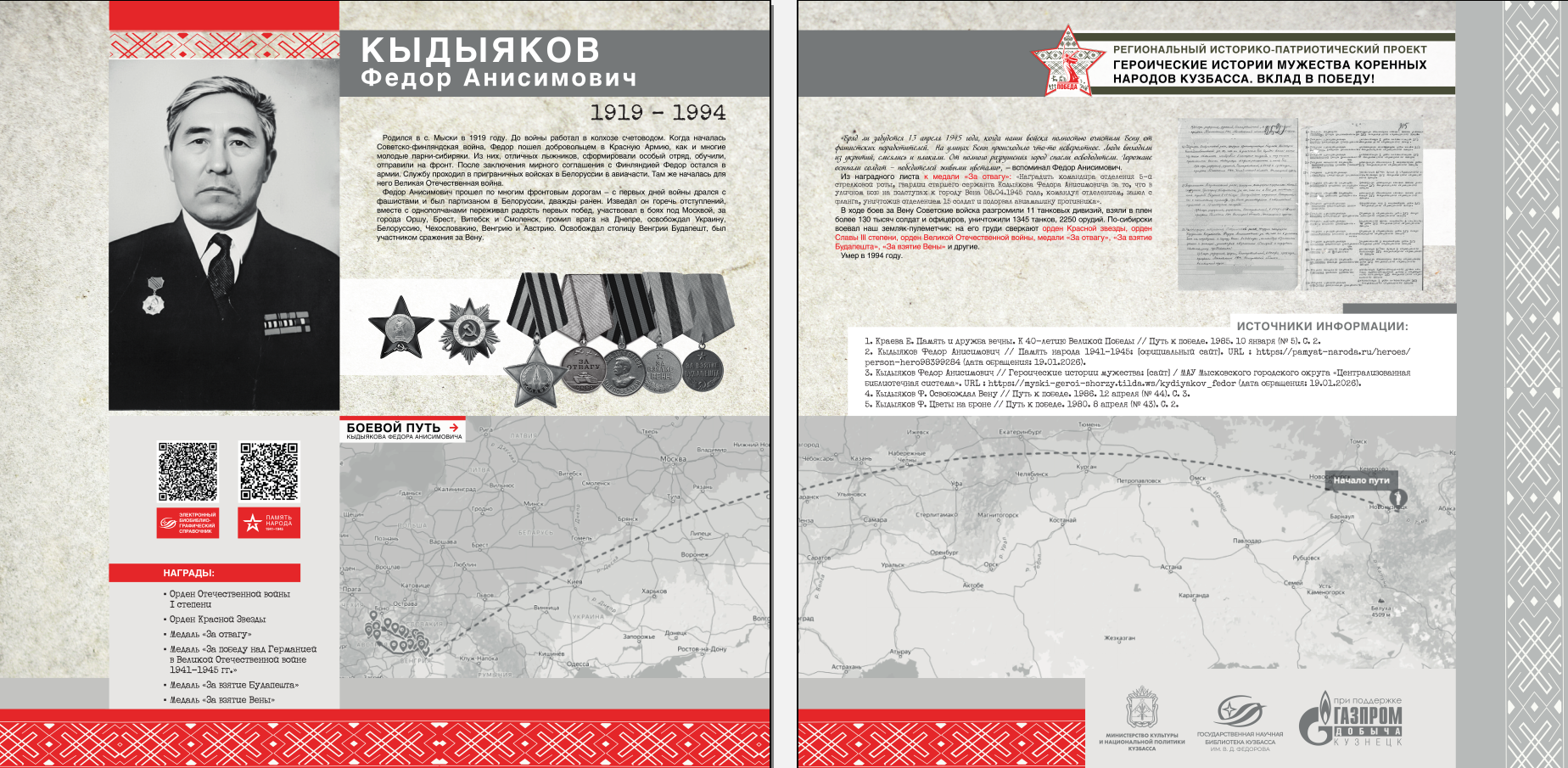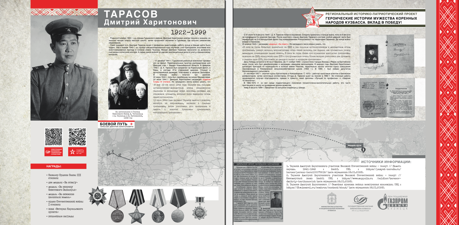 Передвижная выставка-инсталляция «Героические истории мужества коренных народов Кузбасса. Вклад в Победу!» подготовлена при спонсорской поддержке ООО «Газпром добыча Кузнецк».