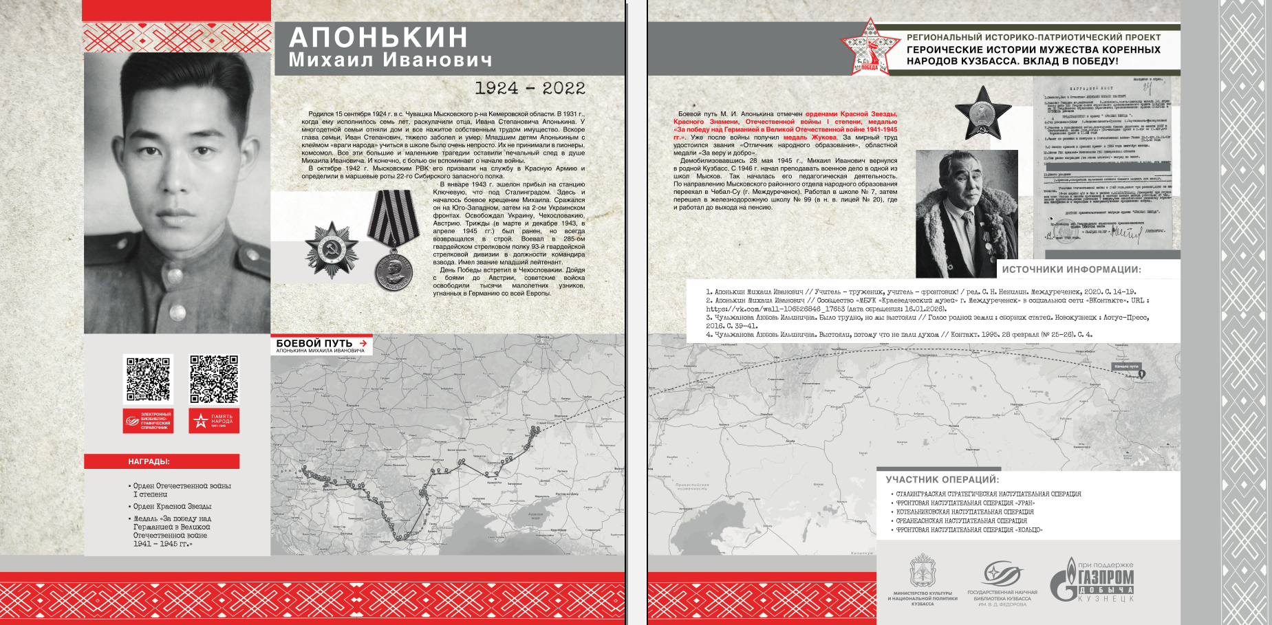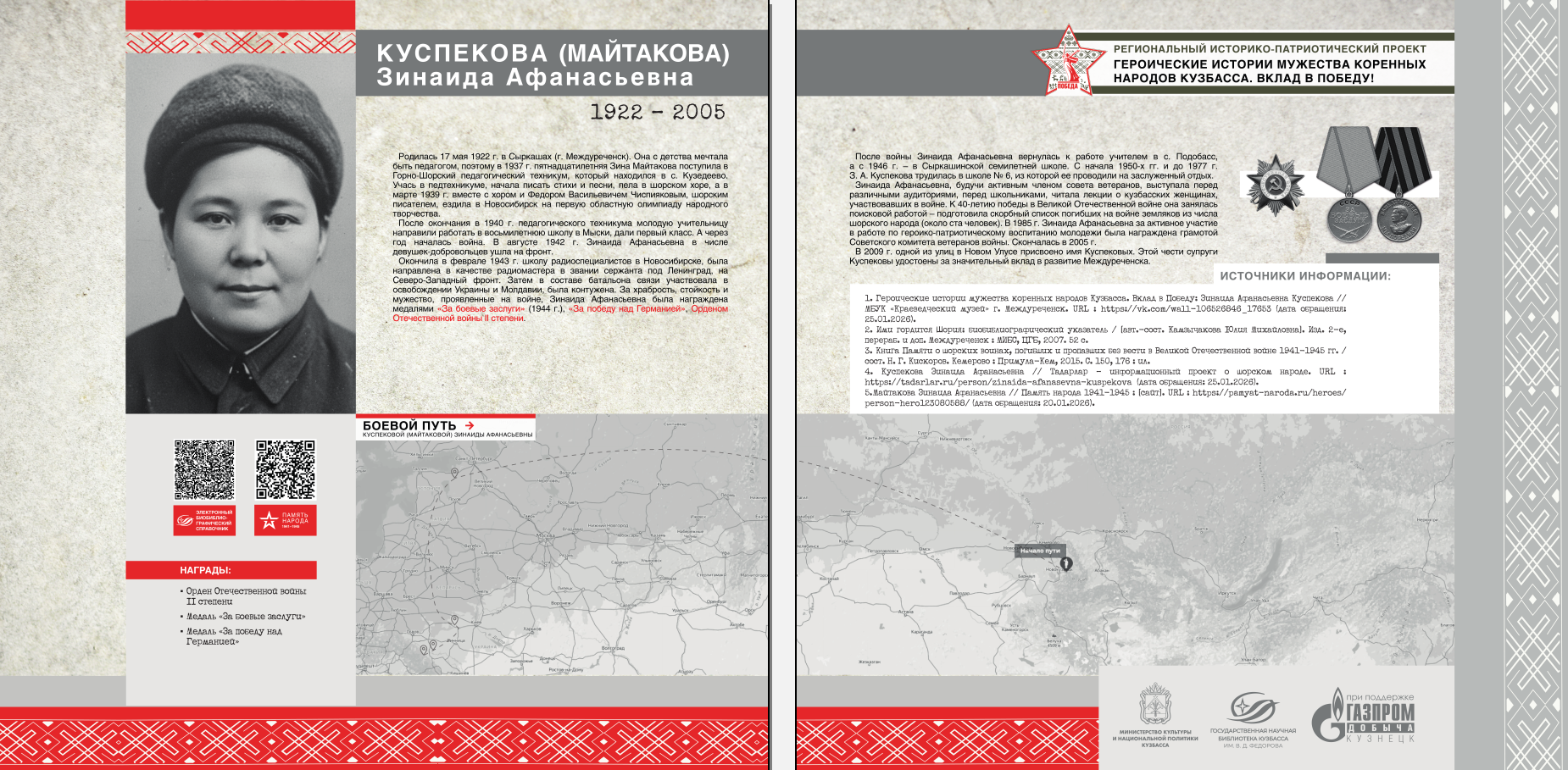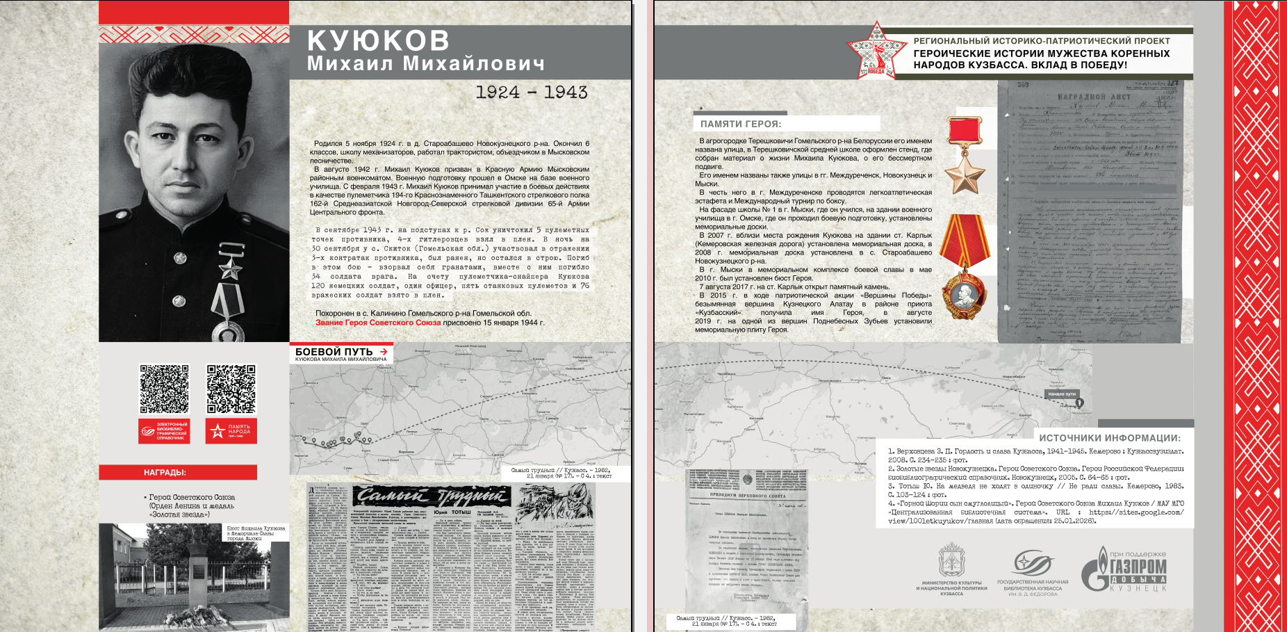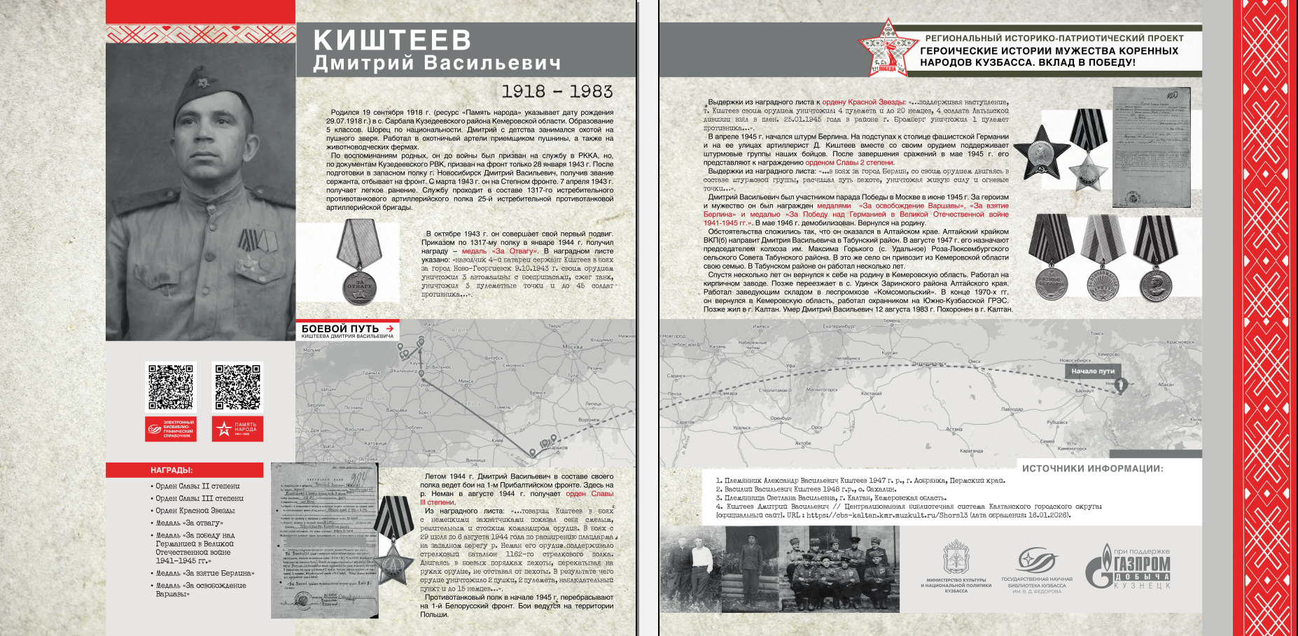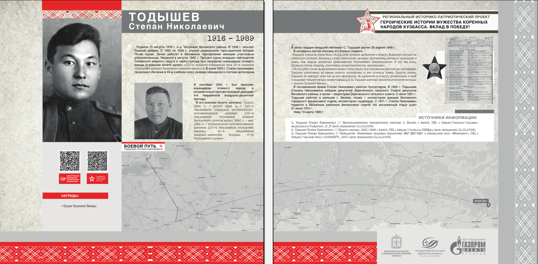 Передвижная выставка-инсталляция «Героические истории мужества коренных народов Кузбасса. Вклад в Победу!» подготовлена при спонсорской поддержке ООО «Газпром добыча Кузнецк».