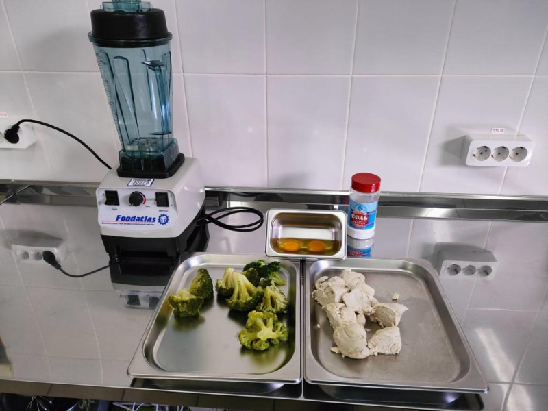 - отварить куриную грудку и капусту брокколи, остудить, пропустить через мясорубку или взбить на блендере;