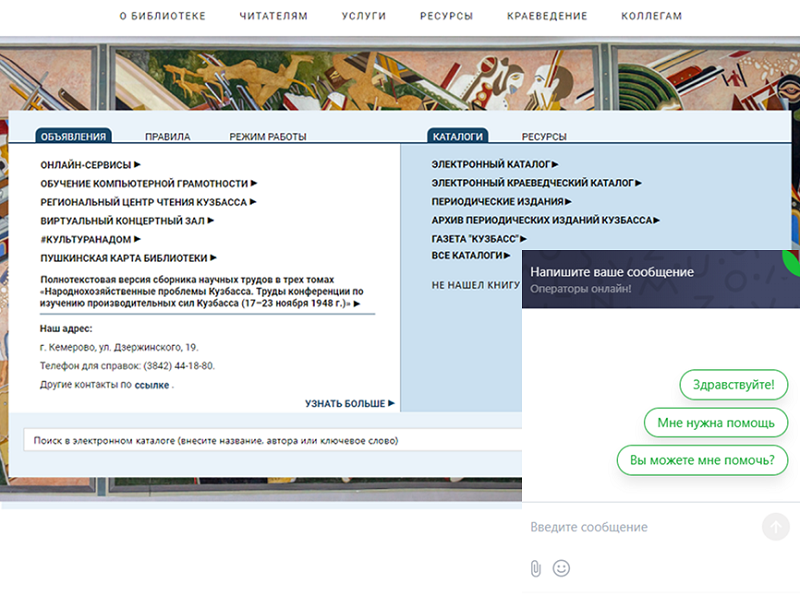 Виртуальный помощник помогает пользователям искать необходимую информацию, отвечает на наиболее частые и актуальные вопросы, например, как продлить книгу или оформить читательский билет.