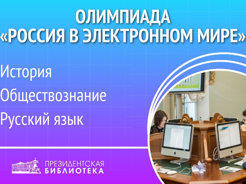 С 25 сентября 2025 года по 26 марта 2026 года Президентская библиотека и Национальный исследовательский университет «Высшая школа экономики» проводят олимпиаду «Россия в электронном мире» по отдельным предметам – истории, обществознанию и русскому языку.