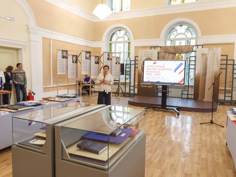 В Витражном зале Государственной научной библиотеки Кузбасса им. В. Д. Федорова работает выставка книг и цифровых ресурсов «Культурный вектор развития Кузбасса. 1948–2035».