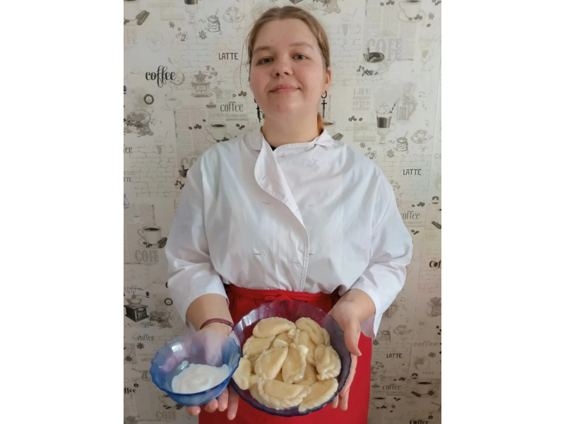 Далее тесто раскатываем в тонкий пласт и вырезаем кружочки. На середину заготовки кладем начинку и скрепляем края. Отвариваем готовые вареники в подсоленной воде 3 минуты. Подаем со сметаной.