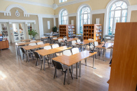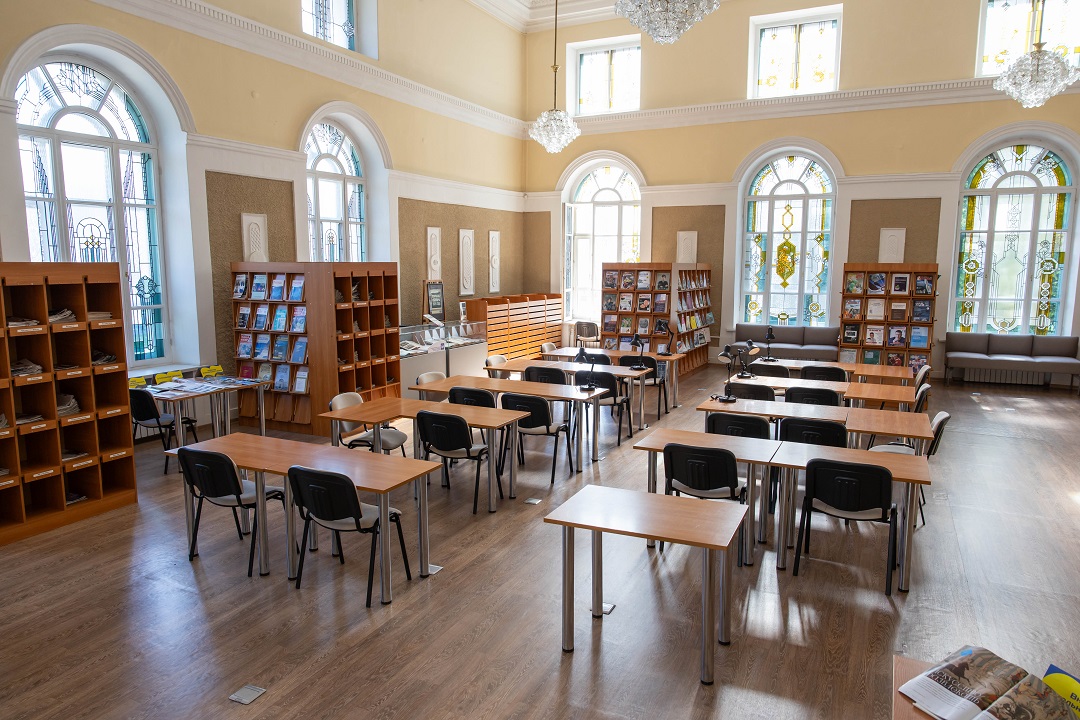 Особенностью зала является два яруса витражных окон. Для комфортного пребывания установлены мягкие диваны, на каждом столе установлено дополнительное освещение.