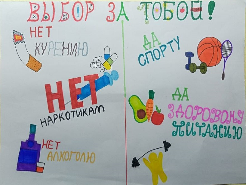 Описание работы: Рисунок направлен на информирования молодежи и взрослых о негативных последствиях курения, алкоголизма и наркотиков. Он наглядно демонстрирует влияние этих привычек на здоровье и жизнь человека, подчеркивая важность выбора здорового образа жизни!