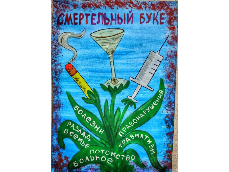 Описание работы: На рисунке представлен «букет» вредных привычек и последствия, которые они оказывают.