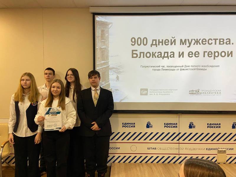 26 января в Штабе общественной поддержки партии «Единая Россия» состоялся патриотический час, посвященный одной из самых трагических и героических страниц в истории нашей страны — блокаде Ленинграда. Это мероприятие было организовано сотрудниками Кемеровского регионального центра Президентской библиотеки и приурочено к Дню полного освобождения города от фашистской блокады.