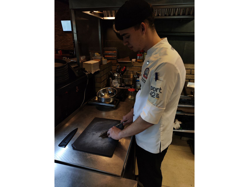 3- нарезать вырезку на слайсы, затем на кубики 3-4 мм.