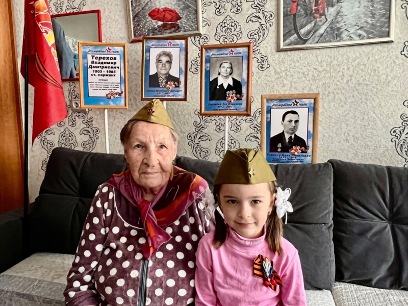 Александра после митинга пришла к прапрабабушке, которая в годы войны была ребёнком, чтобы поздравить с её с Днём Победы. Людмила Петровна рассказала праправнучке о тех страшных годах, о голоде, холоде, о страхе, который жил в каждом доме, о том, как ждали весточку с фронта. В этот день они не просто вспоминают прошлое, они строят будущее, в котором нет места войне. Будущее, в котором будет царить мир.