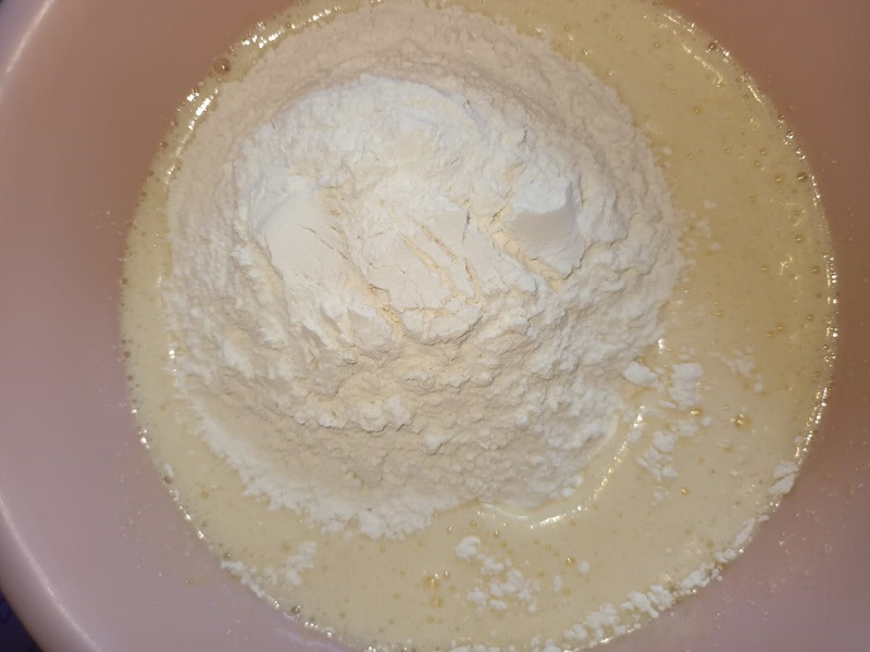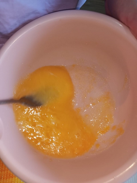 - Взбить 6 яиц с 300 грамм сахара и щепоткой соды.