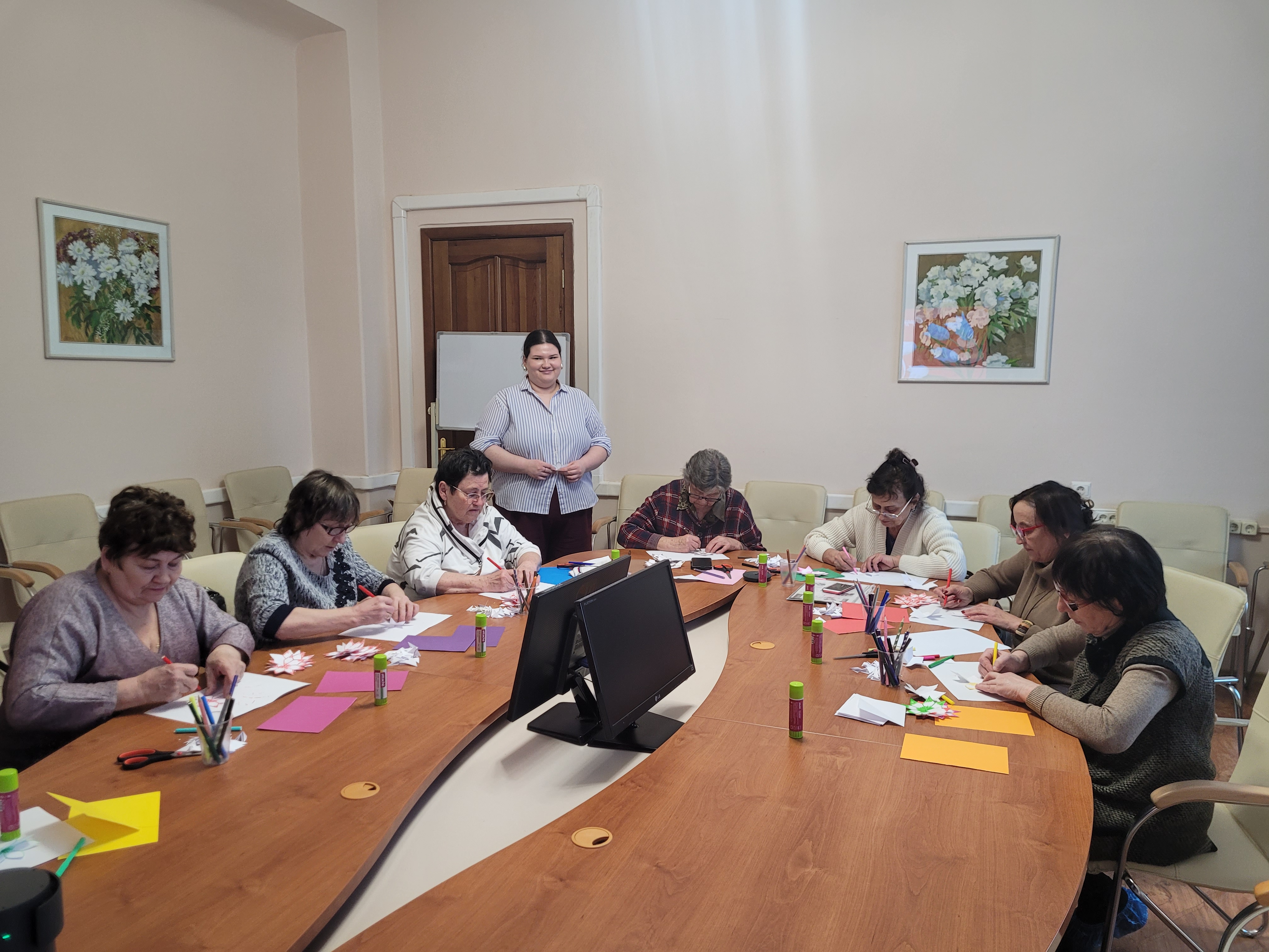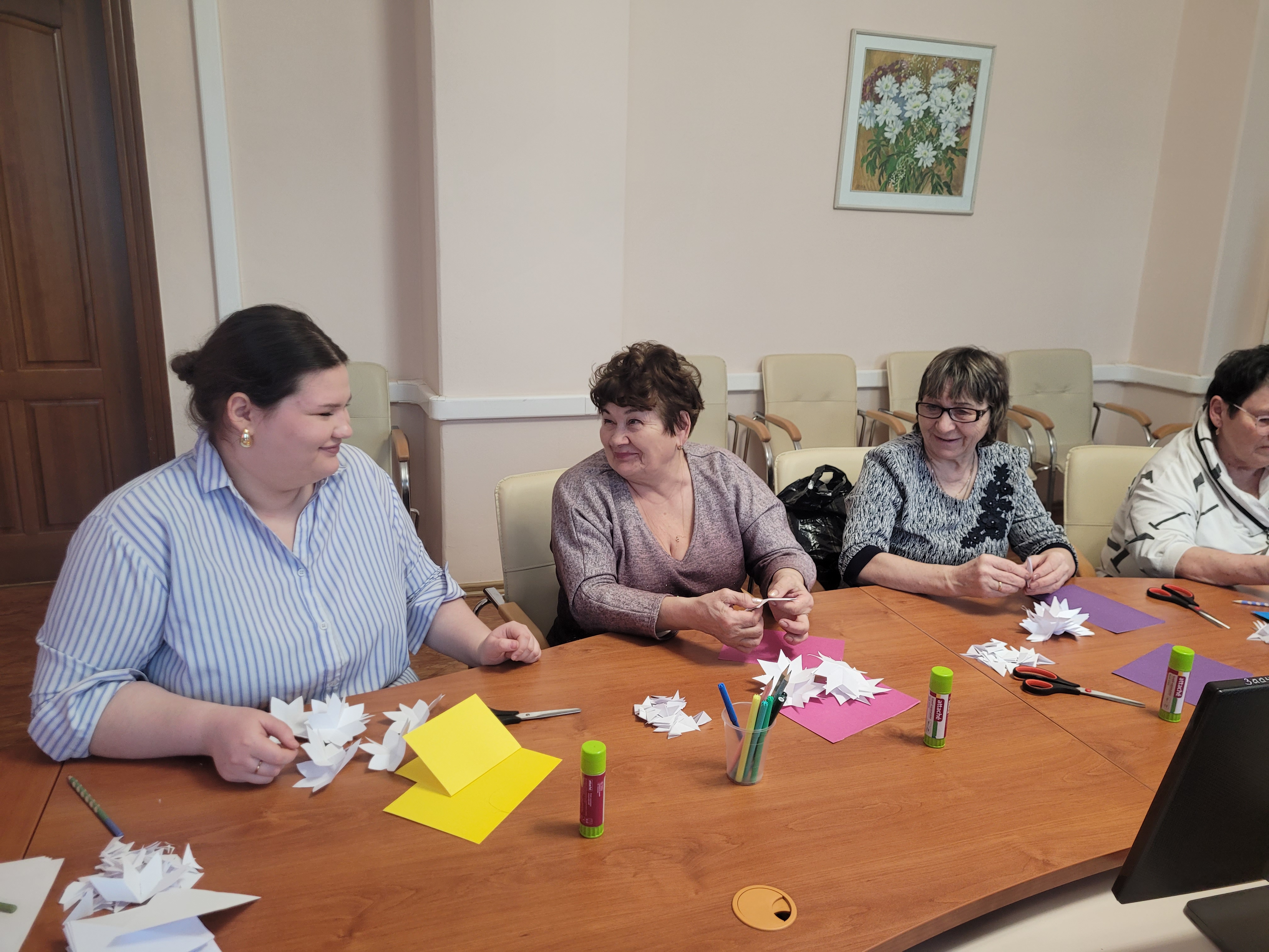 Таким образом, этот мастер-класс стал не только приятным событием накануне праздника, но и возможностью выразить уважение и внимание к женщинам старшего возраста, внести вклад в создание праздничного настроения и укрепить связи поколений.