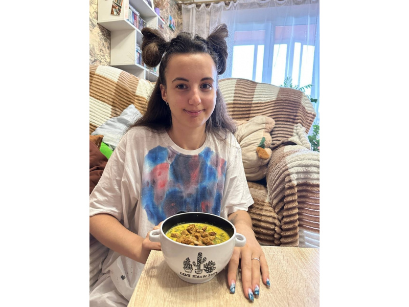 9. Подаем тыквенный крем-суп, присыпав сухариками.