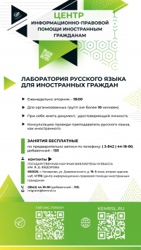 В Государственной научной библиотеке Кузбасса успешно работает Центр информационно-правовой помощи иностранным гражданам.