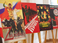 Выставка социального плаката студентов-дизайнеров Кузбасского художественного колледжа «Zа Победу!» открылась в Государственной научной библиотеке Кузбасса им. В.Д.Федорова.
