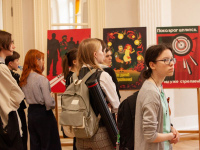 С приветственным словом к гостям обратилась директор библиотеки Государственной научной библиотеки Кузбасса им. В.Д. Федорова Вера Никулина, поздравив всех с наступающим праздником Великой Победы, и представив директора Кузбасского художественного колледжа Татьяну Нохрину, которая рассказала, как появился проект социального плаката, и как родилась идея создания выставки студенческих работ – макетов социальных плакатов. Член международной ассоциации изобразительных искусств Союза художников России Инна Акимова более подробно описала творческий процесс и атмосферу, в которой творили студенты-дизайнеры, создавая свое видение прошлого и настоящего легшего в основу графических картин. В своем приветствии к участникам мероприятия, министр культуры и национальной политики Кузбасса Ольга Феофанова подчеркнула особую значимость и актуальность выставки, а также высокий уровень представленных работ, отметив их современность, профессионализм и честность. В свою очередь, председатель комитета по вопросам образования, культуры и национальной политики Законодательного собрания Кемеровской области – Кузбасса Ирина Федорова также поздравила всех с наступающим праздником и отметила, что в настоящее время Кузбасс, как и в годы Великой Отечественной войны, вносит свой вклад в Победу, поддерживая участников специальной военной операции. Жители региона собирают и отправляют на фронт гуманитарный груз с необходимыми вещами, посвящают русским воинам свои стихи, песни и даже художественные картины. Выступление Ирины Федоровой продолжила Любовь Голубицкая, руководитель автономной некоммерческой организации «Агентство инфраструктурных и социальных проектов», рассказав об особой тесной связи, возникшей между Кузбассом и Горловкой. Через онлайн включение Нелли Короткова, начальник управления культуры администрации города Горловка, поблагодарила кузбассовцев за поддержку, отметив, что жители города чувствуют ее и ценят.