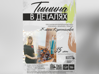 2 марта в 13:00 в Государственной научной библиотеке Кузбасса им. В. Д. Федорова состоится открытие персональной выставки кузбасской художницы Жанны Коростелевой «Тишина в деталях», посвященной 35‑летию творческой деятельности.