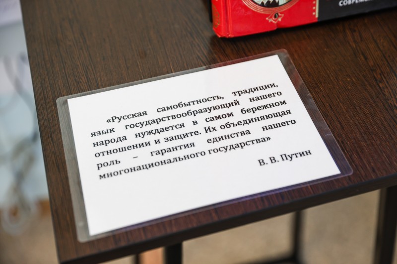 Мы решили «объединить» эти два события в небольшой книжной выставке «Русский язык. Единый язык великого народа». Выставка находится в Электронном читальном зале (каб. 45) Кемеровского регионального центра Президентской библиотеки.