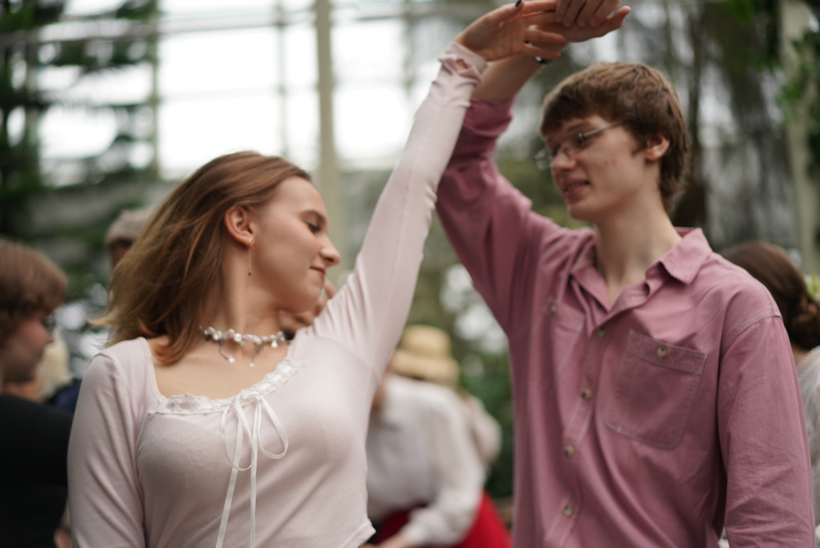 Центральным событием вечера стала костюмированная постановка, воссоздающая дух рубежа XIX–XX веков. Более 30 участников студии исторического и постановочного танца «Сюита», выступающих в роли Волонтеров культуры, оживили образы ушедшей эпохи. Благодаря их стараниям гости смогли не только услышать стихи, но и погрузиться в атмосферу времени через игры и танцы, отражающие культурные традиции Серебряного века. Каждый зритель в этот день почувствовал себя не просто наблюдателем, а гостем из прошлого, вовлеченным в изысканный диалог двух великих поэтесс.
