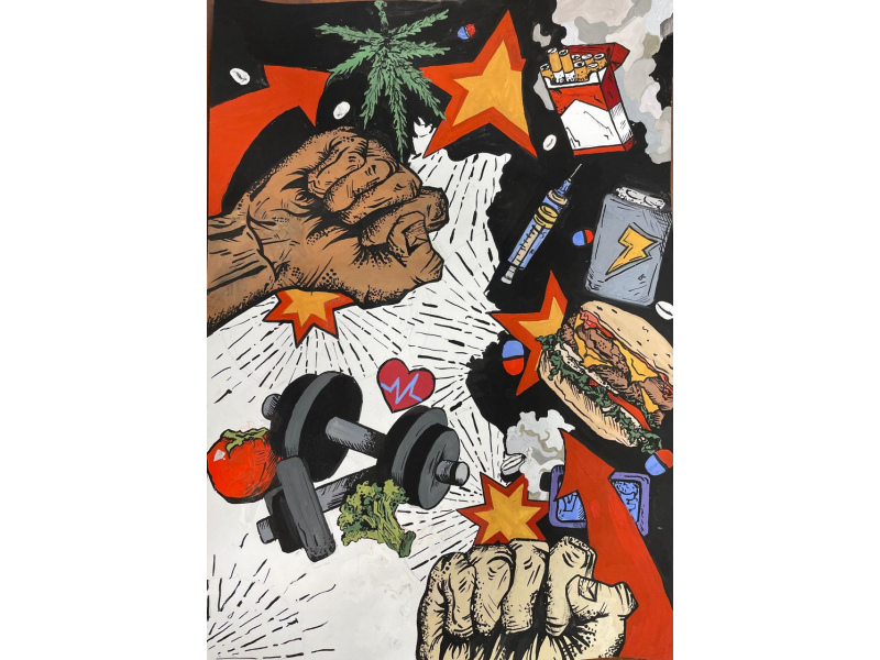 Описание работы: На плакате изображены пагубные привычки человека, способные превратить его жизнь в ад, в противовес им представлены составляющие здорового образа жизни, которые могут продлить жизнь человека, сделав ее качественной - без болезней! Выбирая ЗОЖ – выбираешь жизнь!
