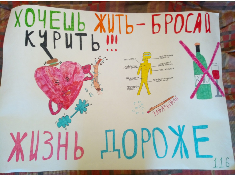 Описание работы: Мой рисунок показывает на то, что нельзя такого делать, вы загубите свою жизнь вот этим, не нужно этого делать. Лучше заниматься спортом и кушать полезную еду, тогда ваша жизнь станет намного лучше и позитивнее!