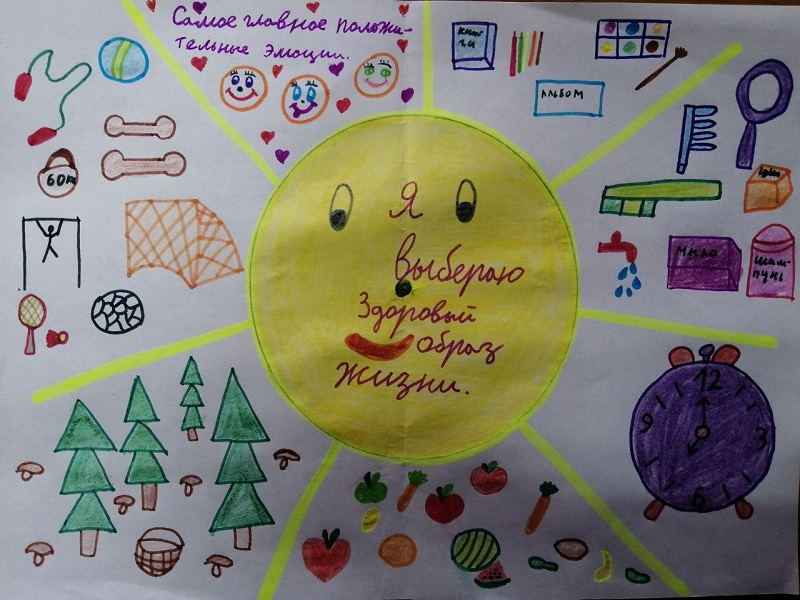 Описание работы: Студентка первого курса подготовила плакат, пропагандирующий здоровый образ жизни. На плакате изображены ключевые аспекты здорового образа жизни, такие как правильное питание, регулярная физическая активность и важность психического здоровья. Визуальные элементы плаката включают изображения фруктов, спортивных занятий которые подчеркивают позитивные стороны здорового образа жизни. Яркие цвета и привлекающие внимание графики делают плакат информативным и вдохновляющим для всех возрастных групп.