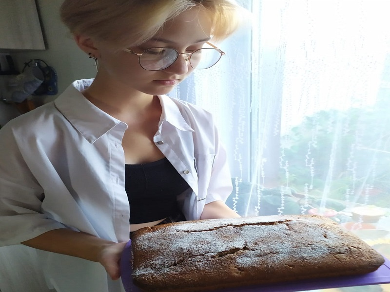 - Готовый пирог достать из духовки и дать полностью остыть. Нарезать на порции и подавать к сладкому столу.