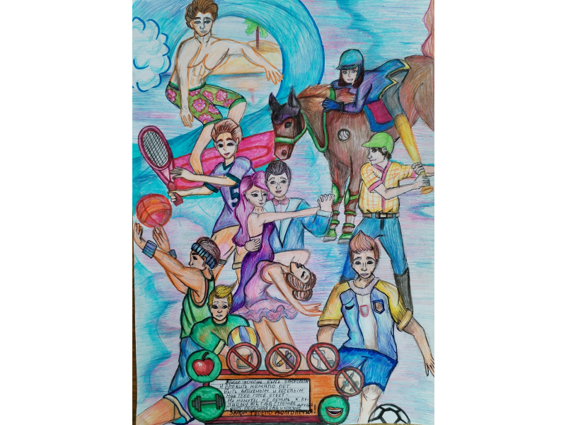 Описание работы: На рисунке представлены : активные виды отдыха и правила Здорового Образа Жизни. Именно такой образ жизни (по моему мнению), дарит нам долголетие.