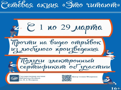 Ежегодно, каждую первую среду марта, тысячи людей отмечают Всемирный день чтения вслух. Основная цель праздника – показать чтение как способ взаимодействия с окружающим миром и как возможность передачи своих эмоций другому человеку вместе со звучащим словом. В честь этого праздника и для поддержки чтения, «Центр чтения» Государственной научной библиотеки Кузбасса им. В. Д. Фёдорова организовал сетевую акцию «Это читают» в электронном формате. Каждому участнику необходимо было выбрать и прочесть фрагмент из своего любимого произведения на видео.