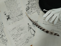 Особое место на выставке занимает уникальное издание 1939 года - "Рукописи А. С. Пушкина. Альбом 1833-1835 гг. Тетрадь 2374 Публичной библиотеки СССР им. В.И. Ленина". Это фототипическое издание, воспроизводящее полный текст "Альбома 1833-1835 гг.", включая листы, которые когда-то были вырваны из него самим Пушкиным. Это ценнейший документ, позволяющий окунуться в мир рукописного творчества поэта, увидеть его личную манеру письма, понять его творческий процесс в деталях. Транскрипция издания сохраняет все особенности оригинала: зачеркнутые слова, знаки вставок, подчеркивания, описки и прочее.